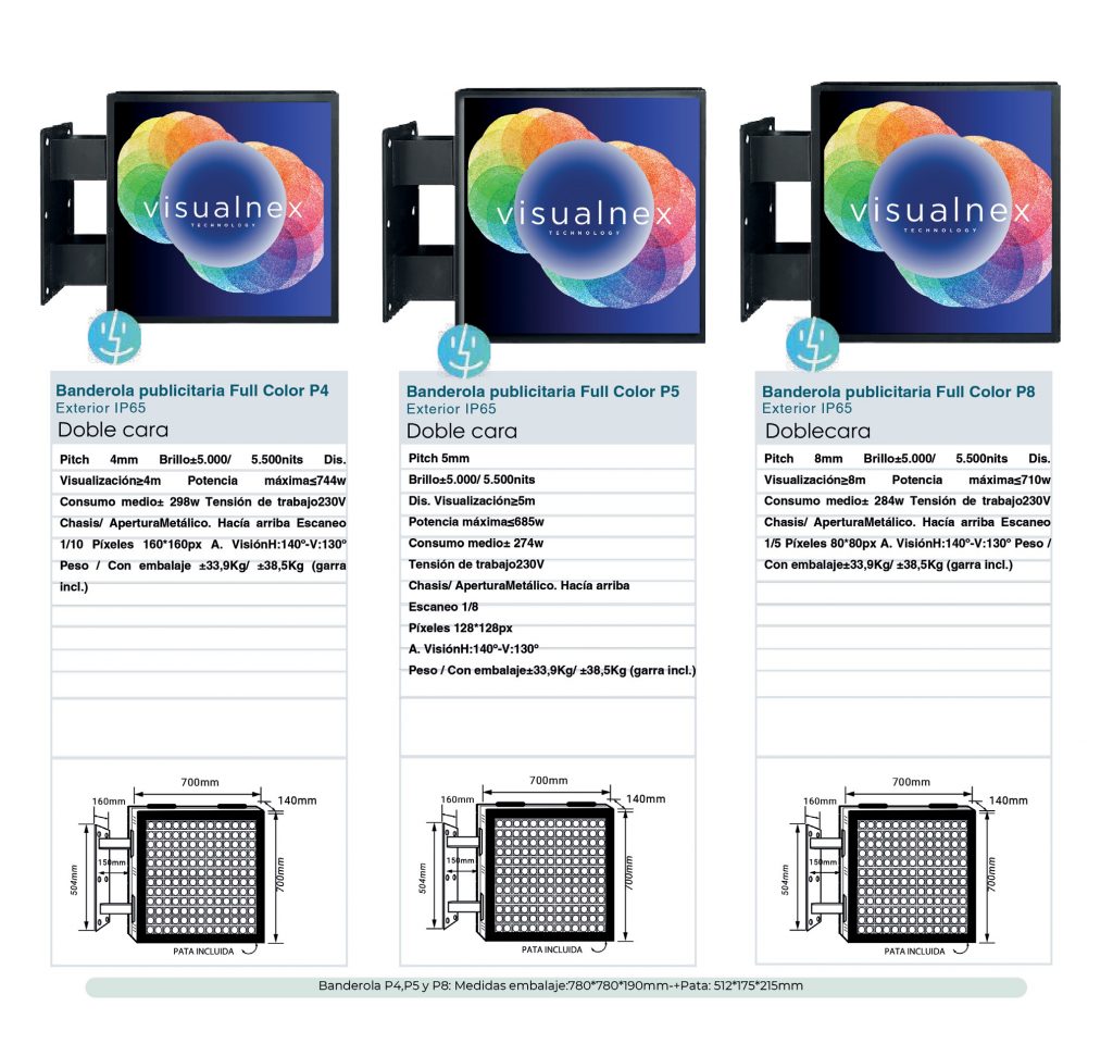Banderolas LED Visualnex. Gama de equipos